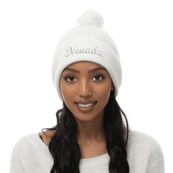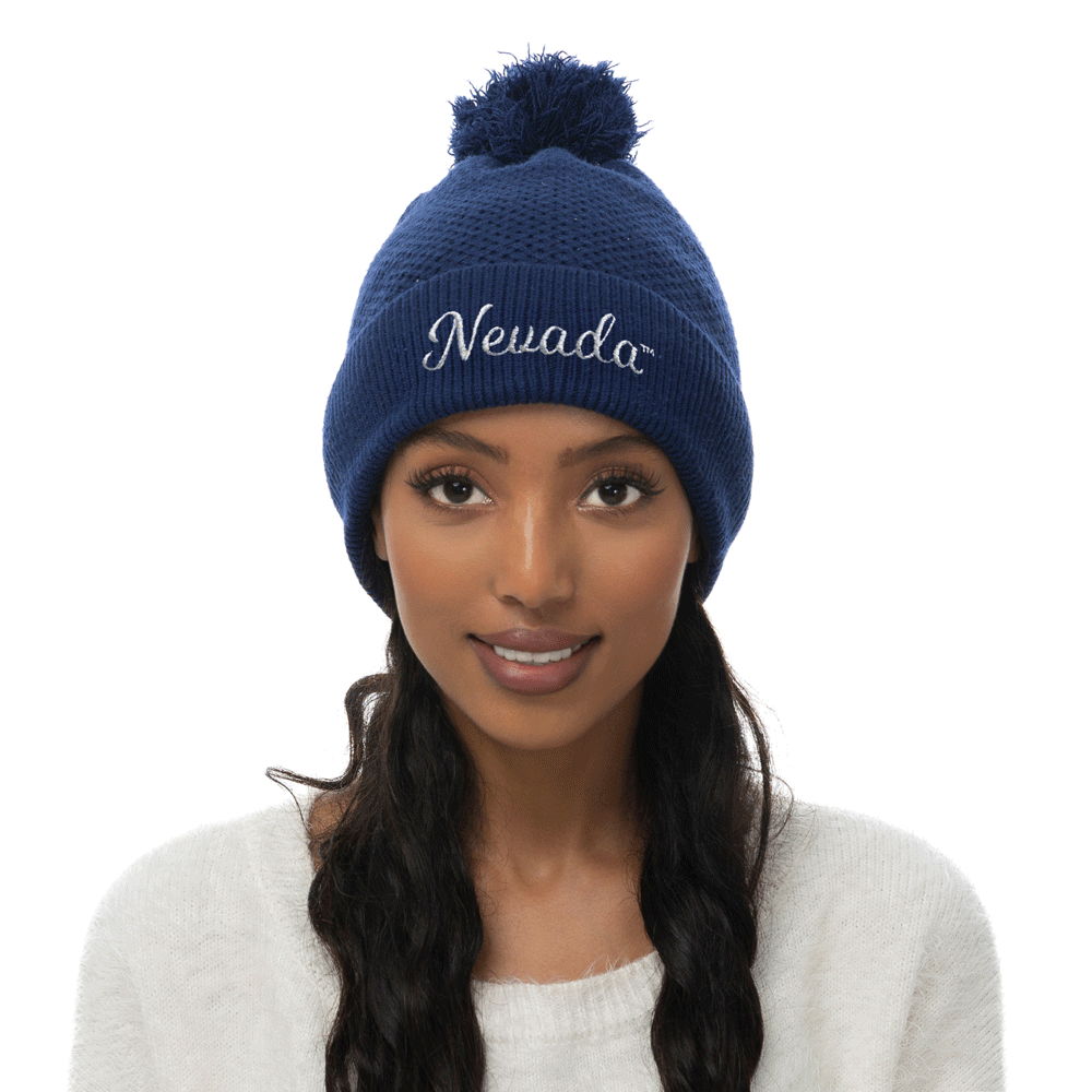 Stay warm and represent the Wolf Pack with the Shimmer Fashion Beanie! This women's knit beanie is made of a polyester / rayon blend and features an embroidered design proudly showcasing a stylized Script Nevada wordmark placed neatly on the cuff. Go Pack!