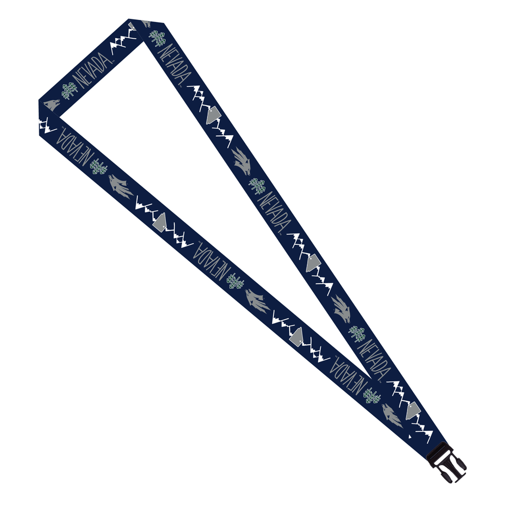 Take the Wolf Pack with you in style with the Landscape Lanyard! This standard-sized lanyard features a detachable clip at the end and features a sublimated design proudly showcasing a "Nevada" wordmark, Sport Wolf logo, Nevada State shape, and iconography such as tees and snow-covered mountains. The perfect way to represent Nevada!