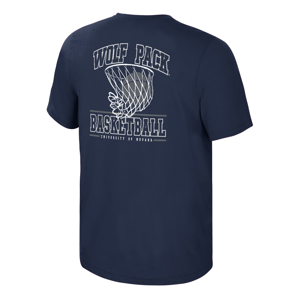 Represent Wolf Pack Basketball with the "From Downtown" Tee! This comfortable men's t-shirt is made of a cotton / polyester blend and features a screenprinted design proudly showcasing a Primary Wolf Pack logo placed on the left side of the chest, along with a full back design featuring "University of Nevada" and "Wolf Pack Basketball" wordmarks, along with basketball net art. Perfect for game day - Go Pack!