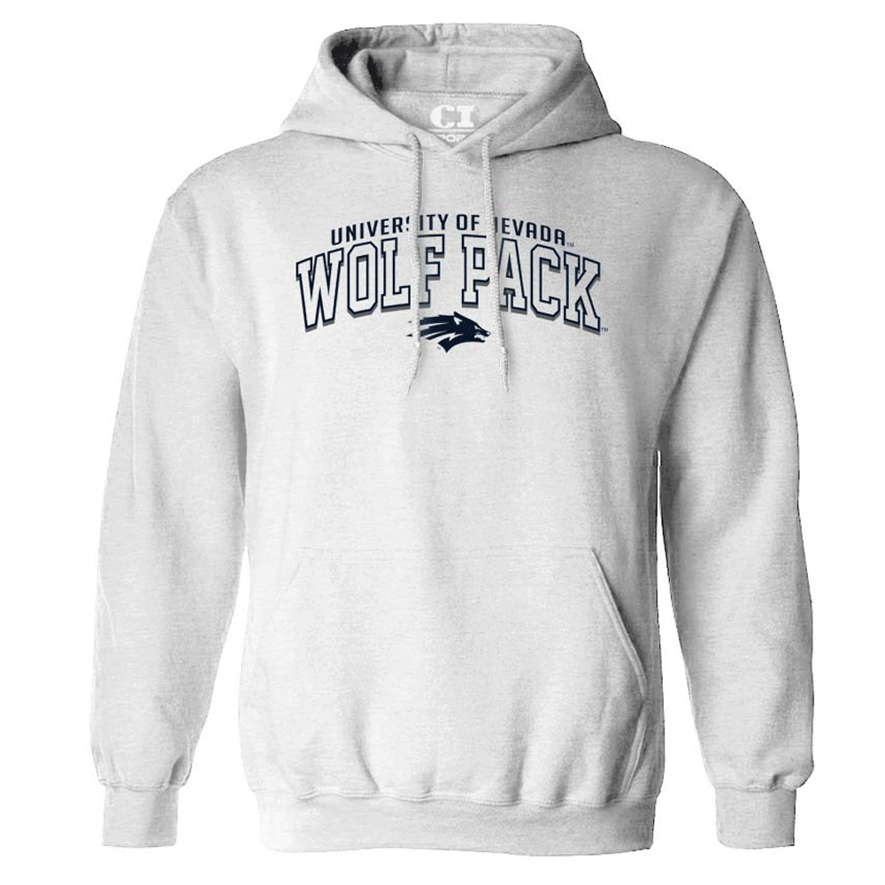 Layer Up with the Double Arch Hoodie! This lightweight men's sweatshirt is made of a comfortable 80% cotton / 20% polyester blend and features a screenprinted design proudly showcasing a Sport Wolf logo along with arched "University of Nevada" and "Wolf Pack" wordmarks. Perfect for game day or every day - Go Pack!