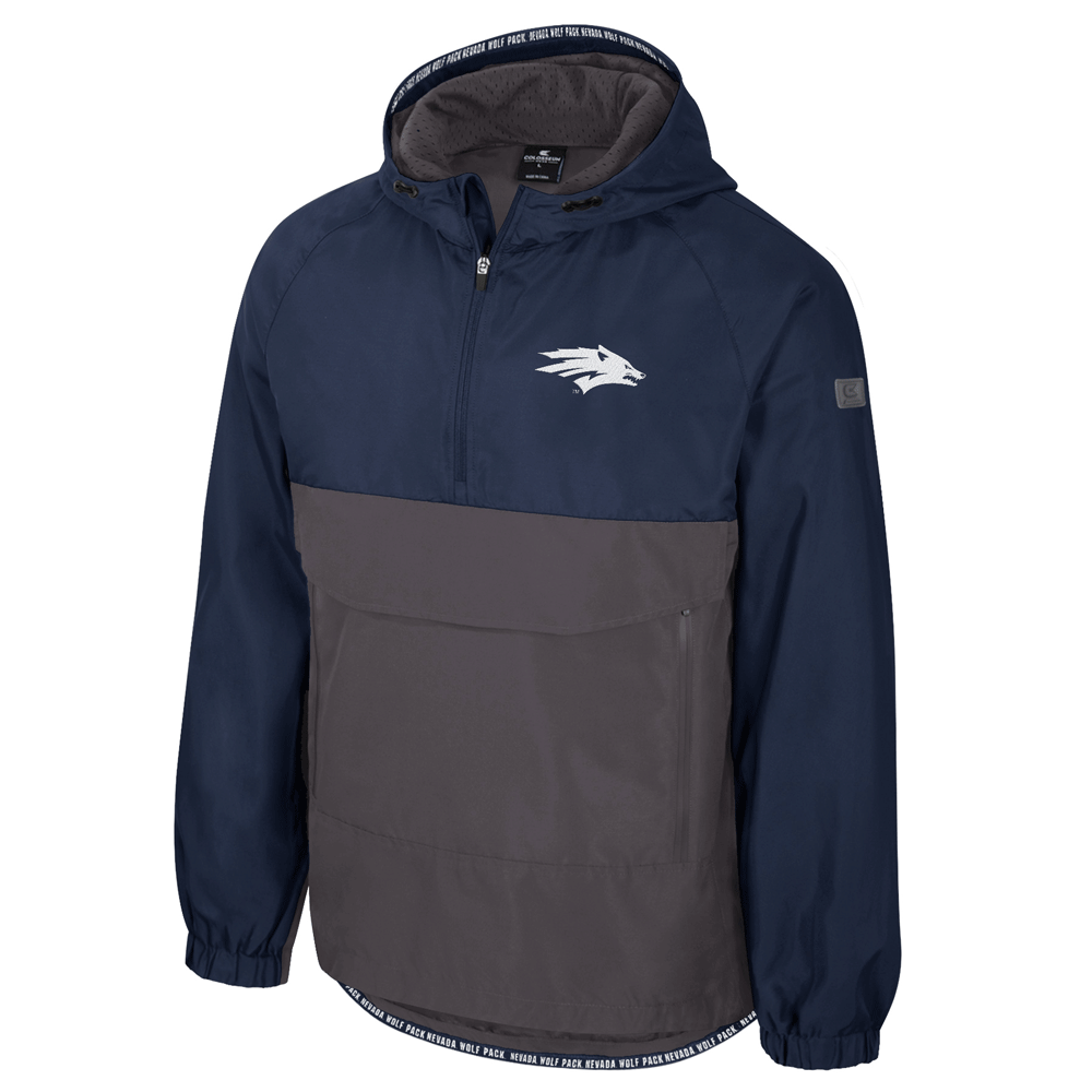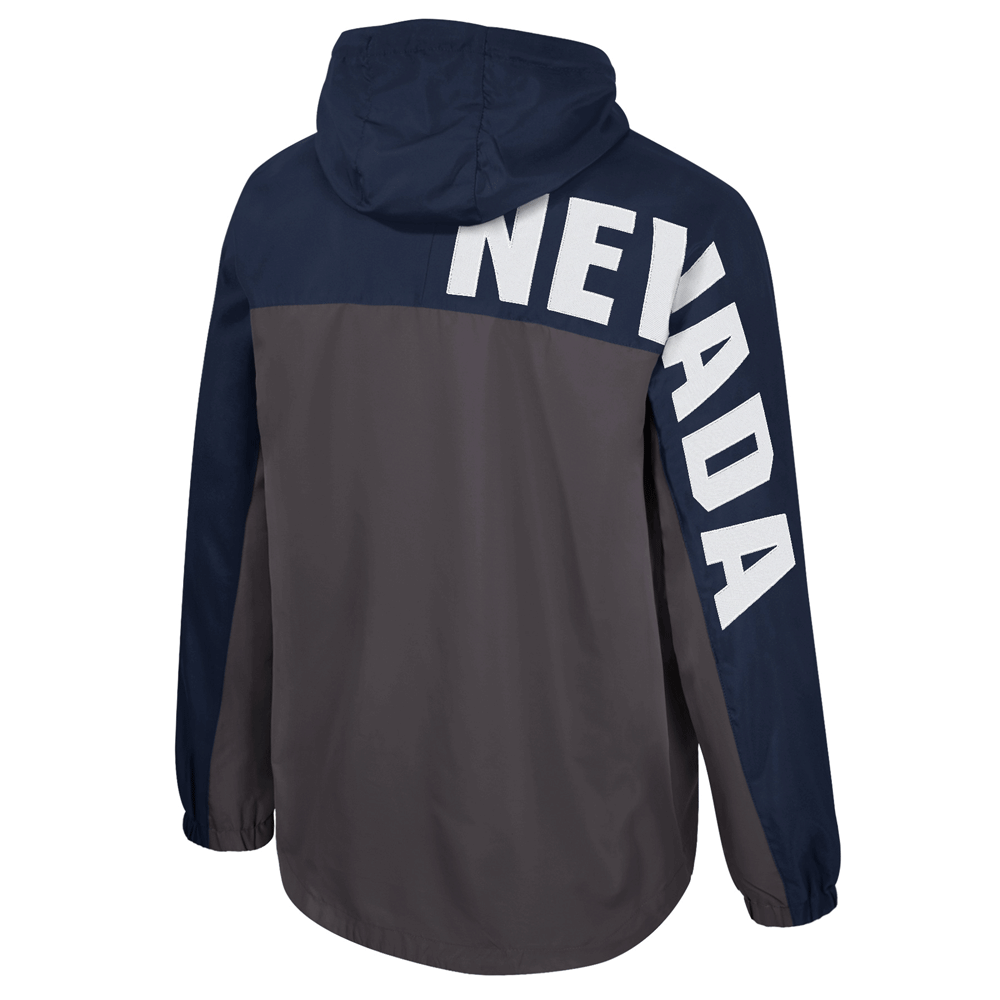 Show off your Wolf Pack pride with the Back to Back Anorak jacket! This men's 1/2 zip jacket features a polyester "windbreaker"-esque outer shell, along with a polyester mesh inner lining and features embroidered details proudly showcasing a Sport Wolf logo on the left side of the chest, and "Nevada" running along the back side of the right shoulder. Perfect for windy or rainy games - Go Pack!