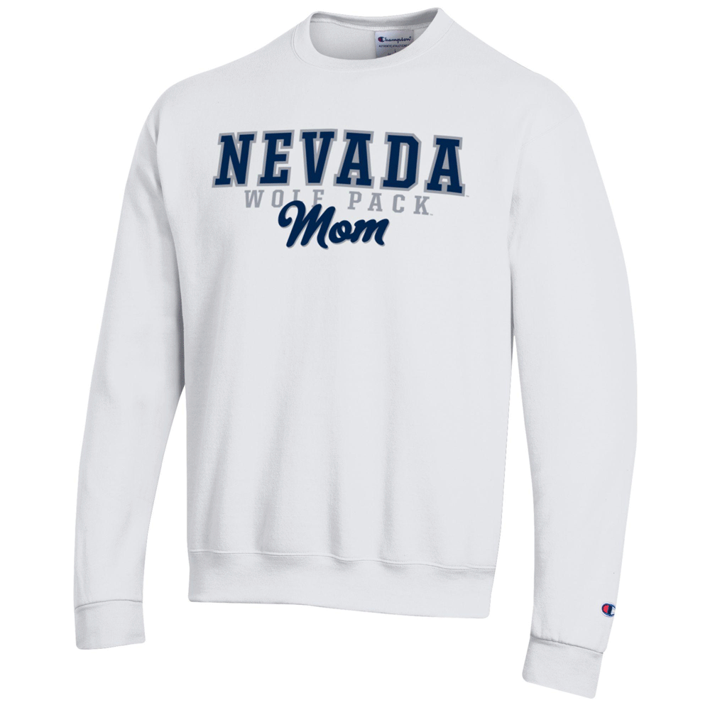The Nevada Mom Crew is a very soft and high quality women's pullover by Champion! This Wolf Pack mom crewneck sweatshirt features a screenprinted design up front, proudly displaying the words "Nevada Wolf Pack Mom" in white and silver. Simple, stylish, and perfect for any Nevada mom. Go Pack!