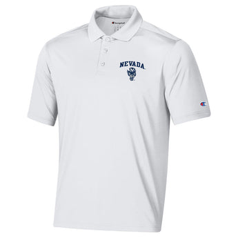 Look your best while representing the Wolf Pack with the Press Coverage Polo from Champion! This sleek men's polo is made of a 90% polyester / 10% cotton blend and features an embroidered graphic proudly showcasing the throwback Top Hat Wolfie logo with an arched "Nevada" wordmark. This item is perfect for the golf course, the office, or campus - Go Pack!