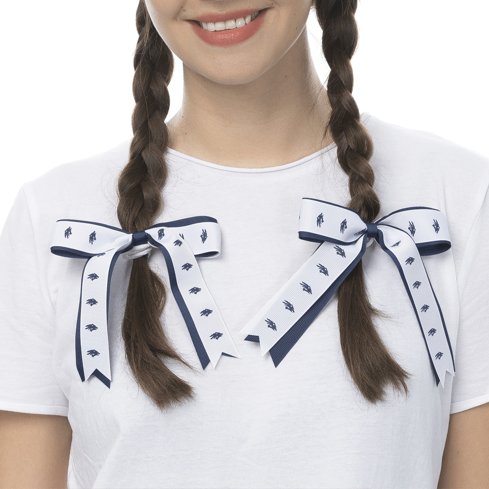 Add some Wolf Pack flair to your hair with the Ribbon Hair 2 Pack! This two-pack of women's hair bows are approximately 5" in size and feature repeating Sport Wolf logos atop white and navy ribbons. Go Pack!