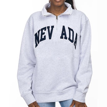 Stay warm and represent the Wolf Pack with the Sport Quarter Zip! This women’s quarter zip fleece jacket is made of a comfortable 76% Polyester/24% Cotton blend and features an embroidered design, proudly showcasing an arched “Nevada”  wordmark across the front. Everybody needs a simple Wolf Pack quarter zip - Go Pack!