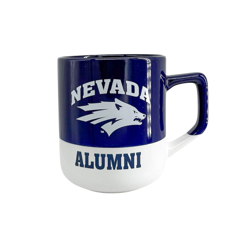 Add some Wolf Pack flair to your kitchen or office with the Alumni Color Block Mug! This 16 oz ceramic mug features a navy and white color block pattern along with a printed Nevada Wolf Pack logo with "Alumni" underneath. Perfect as a gift or for yourself - Go Pack!