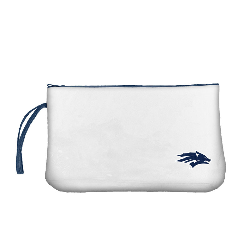 Take your essentials into the Wolf Pack game with the Clear Wristlet bag! This 4.5" x 6.5" bag features a zipper, a small printed Wolf Pack logo, and a small detachable strap. Go Pack!