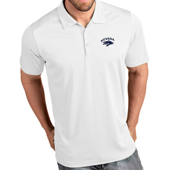 The Tribute Polo is perfect for you! This Antigua men's polo is available in charcoal, black, or navy and is made of 100% polyester. A high quality embroidered logo of a white sport wolf with "Nevada" in arched lettering is proudly displayed on the chest. Wear this to the office, the golf course, or to class - go Wolf Pack!